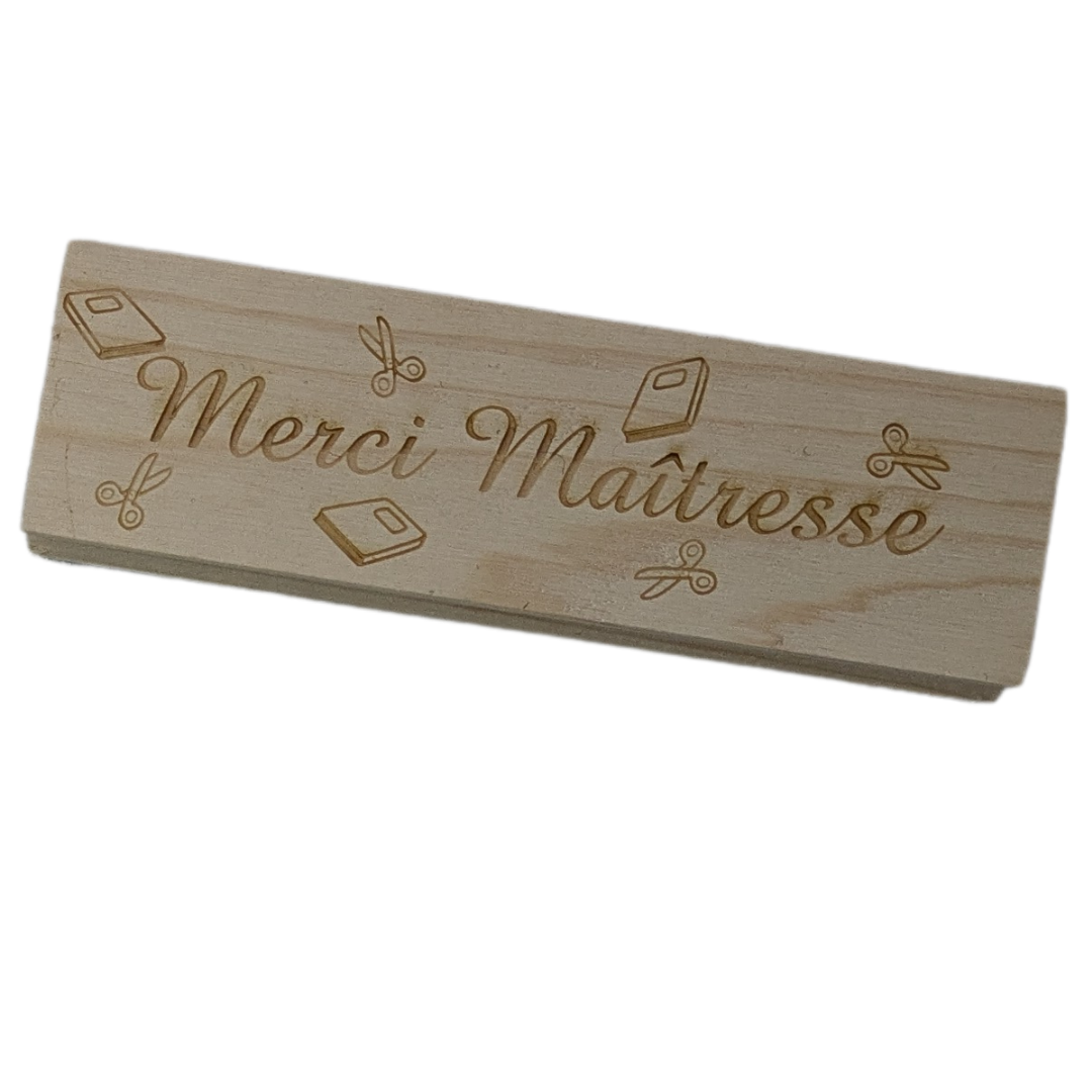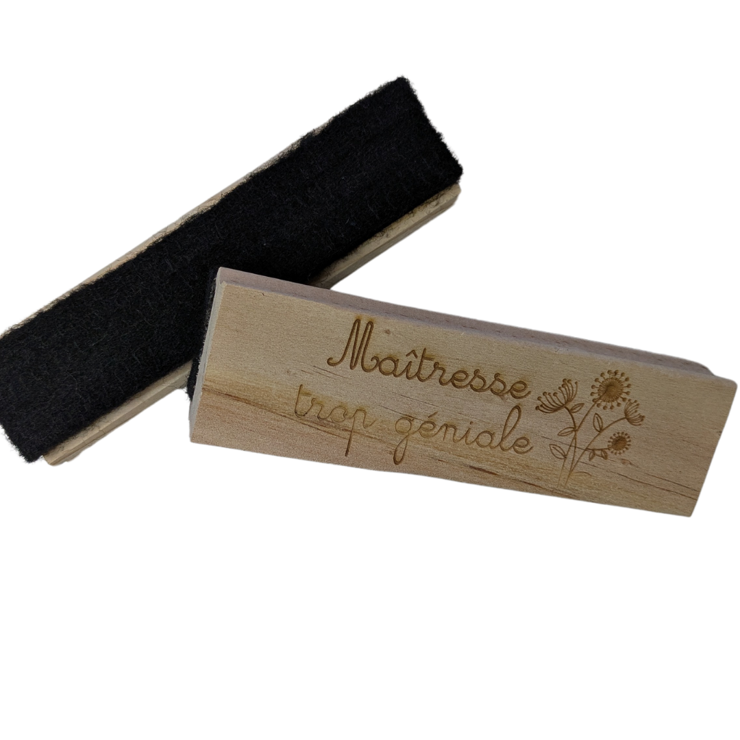 Dîtes Merci de façon originale et touchante avec notre brosse à tableau en bois et feutrine gravée, idéale pour offrir à un maître ou une maîtresse en fin d’année.