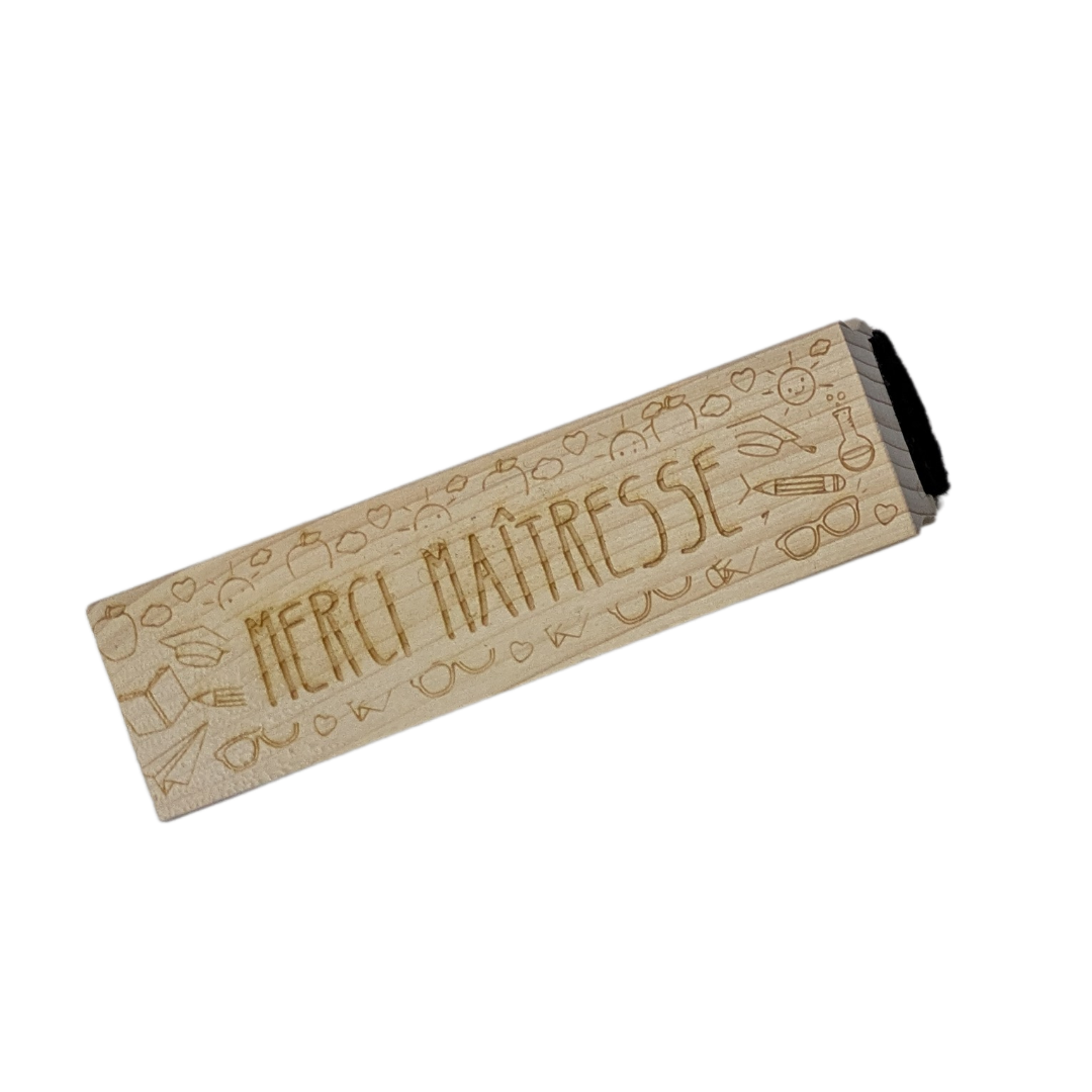 Fabriquée en bois naturel et gravée avec soin, cette brosse effaceur n’est pas qu’un simple accessoire d’ardoise ou de tableau: c’est un souvenir unique, chargé d’émotion, pour un cadeau qui restera dans la mémoire (même si la craie s’efface!).