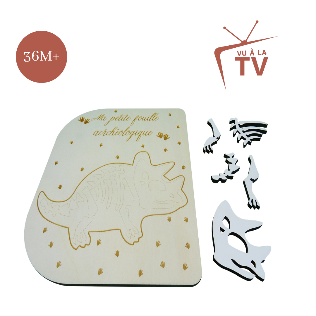 Découvrez notre nouveau jeu passionnant qui transportera votre enfant dans le monde fascinant de l’archéologie : notre couvercle éducatif en contreplaqué de peuplier, créé et fabriqué en France, sur le thème de la fouille archéologique.