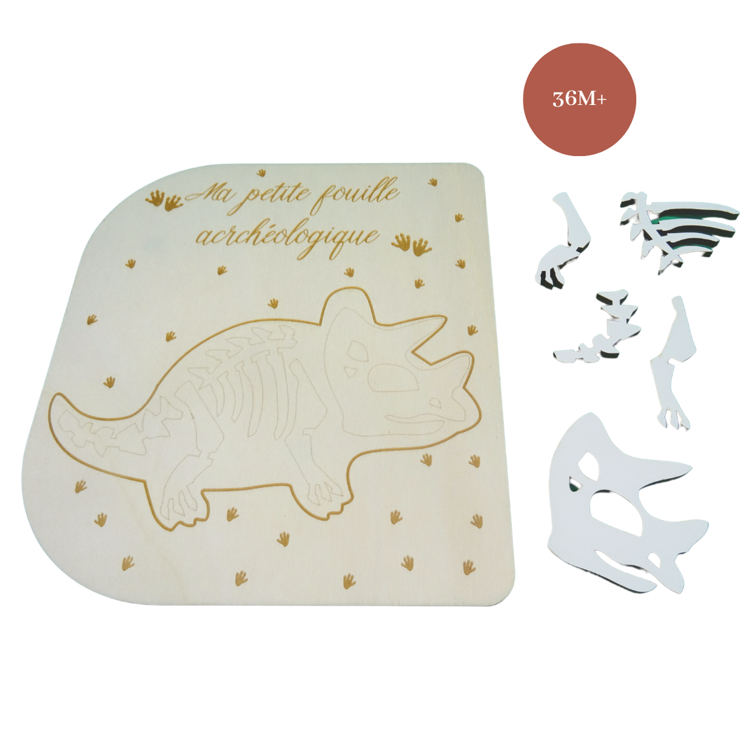 Votre jeu est composé du couvercle ainsi que de tous les os de triceratops associés à notre jeu. Notre jeu est certifié aux normes en vigueur pour les jouets d’enfants, il est donc certifié conforme CE.