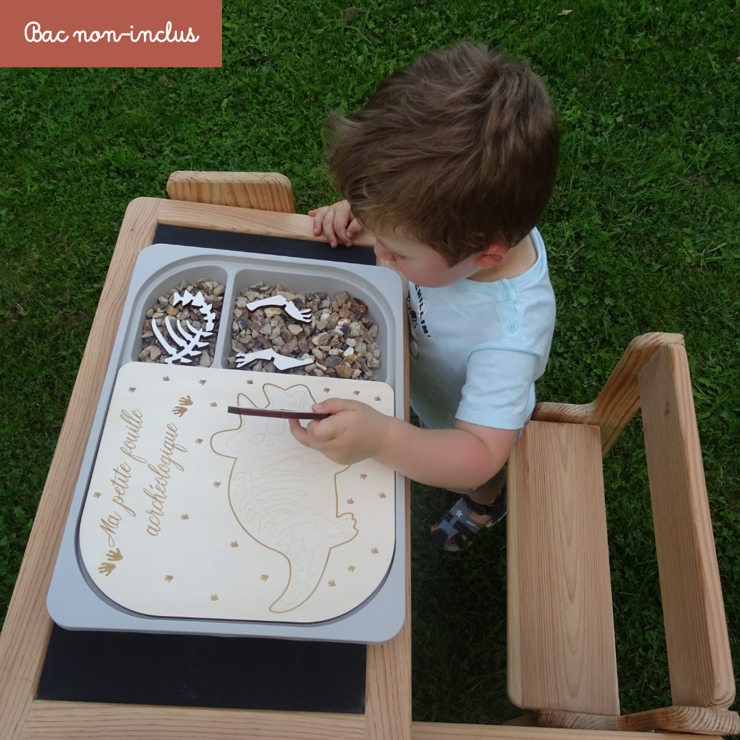 Insert éducatif en contreplaqué pour grand bac Ikea Trofast: “Ma petite fouille archéologique” incluant les accessoires en bois ( os de dinosaure)