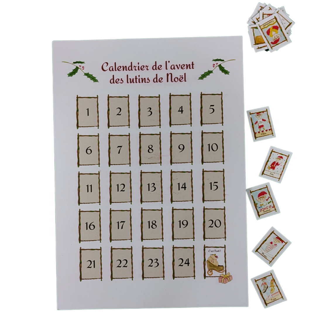 Un magnifique calendrier de l’Avent, illustré par OhanaHook, rempli de 24 cases surprises, chacune accompagnée d’un sticker représentant une bêtise drôle et farfelue du lutin. Chaque jour, vos enfants découvriront une nouvelle facétie que le lutin aurait pu faire dans la maison et pourra ainsi coller le sticker de cette bêtise sur son calendrier de l’avent.