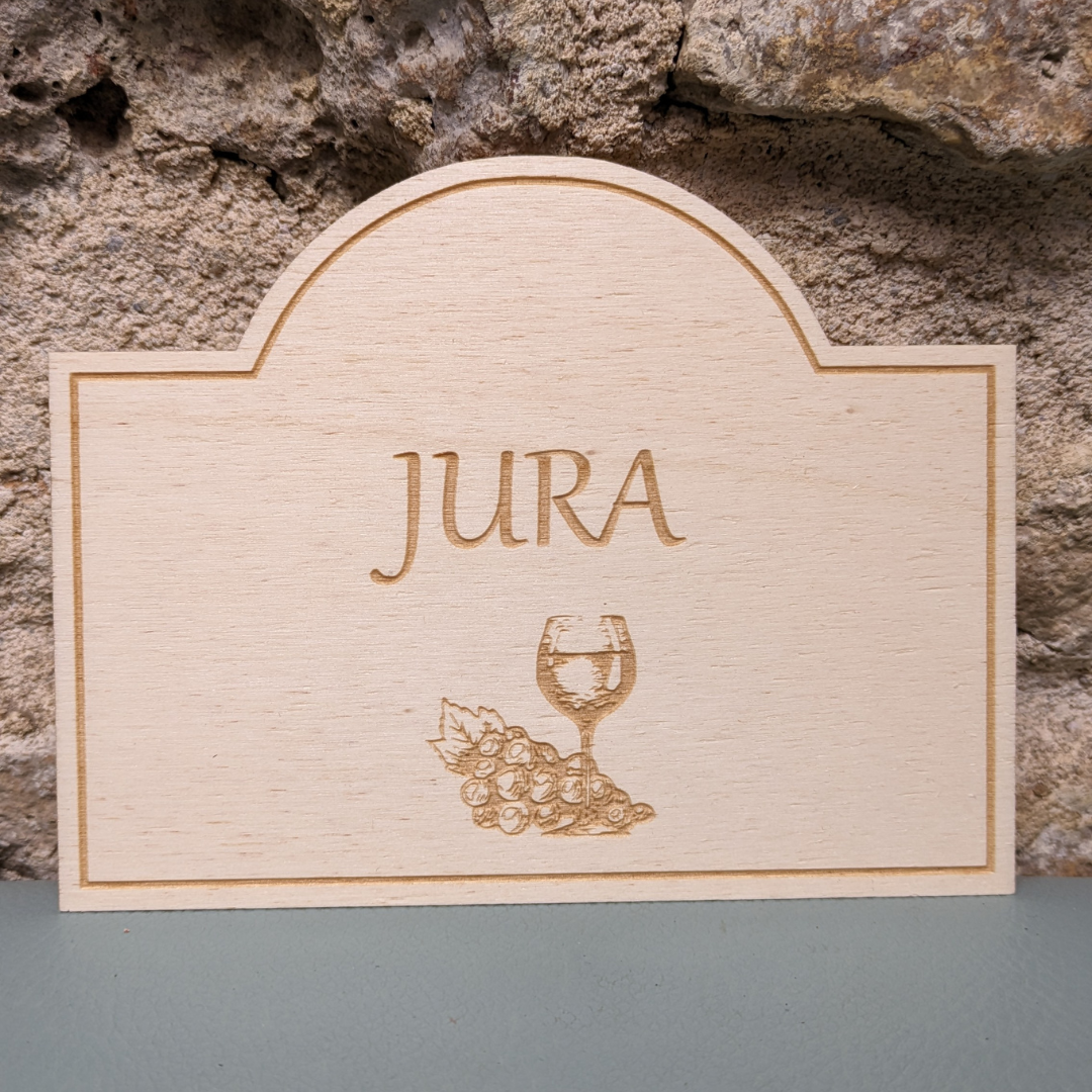Pancarte en bois de sortes de vins pour votre cave à vin “Jura”
